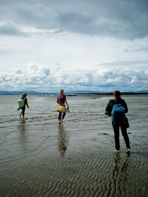 Today we woke up and got ourselves ready to head home. We had four hours to kill, so we went to the Claddagh area of Galway, which is a large park spanning from Wolf Tone bridge and the Latin Quarter over to the Bay. We walked quite a ways, then found some stairs leading into the sand and water of the bay. There were barnacles, shells, rocks, sea glass, dead jellys and all colors of kelp along the beach and we had a great time looking amongst the treasures. I haven't been to the sea in quite some time, maybe not since Ireland last year. I forgot how much I love the water and the beach, there's something so powerful yet calm about it all. It was probably my favorite thing we did in Galway.
